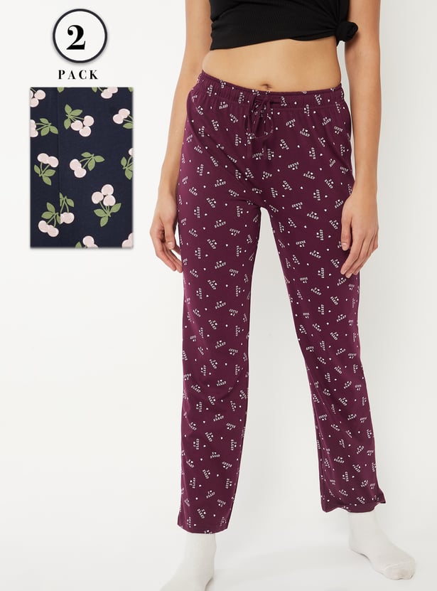 Unwind in everyday comfort with this pack of 2 printed pyjamas designed for relaxed lounging and sleep. Featuring full-length bottoms with an elasticated drawstring waistband, they offer a secure and adjustable fit. One pair comes with an all-over typographic print, while the other features an all-over fruit print for playful variety.