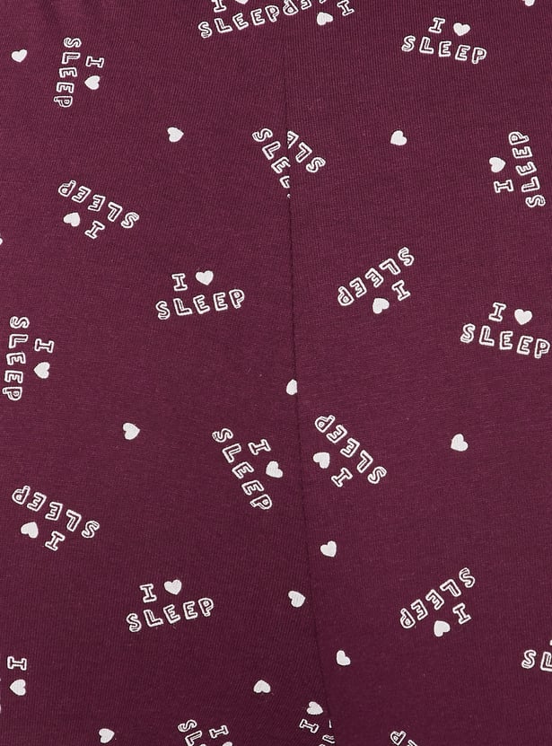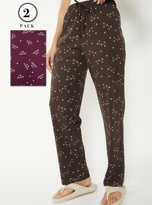 Stay comfortable with this pack of 2 pyjama set, one featuring a playful combination of cat face prints and the other has 'I Love Sleep' patterns. Designed for relaxed comfort, an elasticated waistband with drawstring closure ensures a secure and adjustable fit. Perfect for lounging.