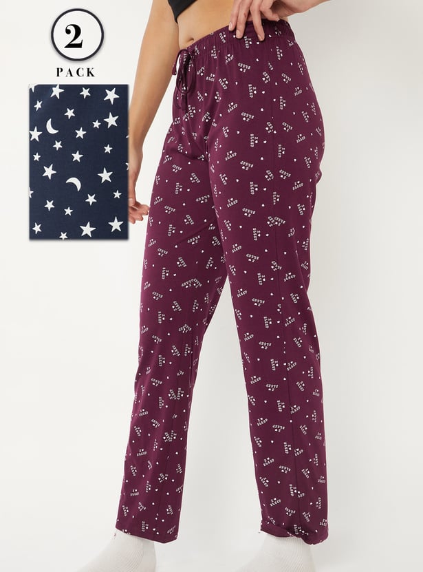 Relax in style with this pack of 2 printed pyjamas, tailored for everyday lounging. Designed with an elasticated waist and drawstring closure, they offer the perfect balance of comfort and functionality, making them a versatile addition to your wardrobe.