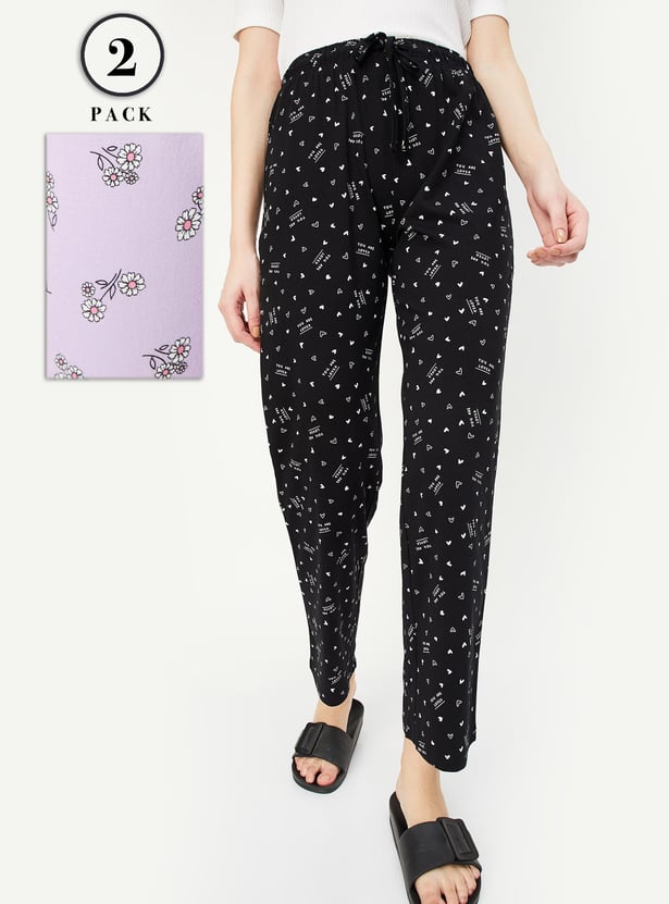 Relax in style with this pack of 2 printed pyjamas, tailored for everyday lounging. Designed with an elasticated waist and drawstring closure, they offer the perfect balance of comfort and functionality, making them a versatile addition to your wardrobe.