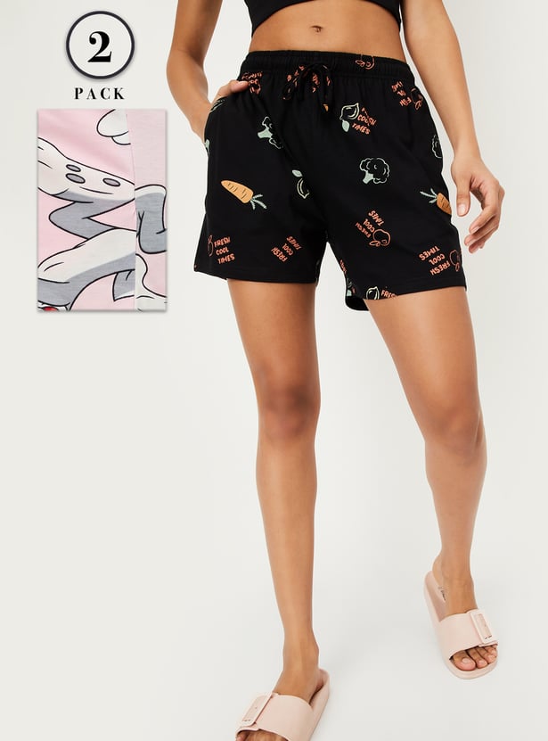 Playful yet practical, this pack of two women’s printed shorts comes with handy pockets and a comfy drawstring closure. One pair features a fun Bugs Bunny print, adding a pop of character to your casual wear.