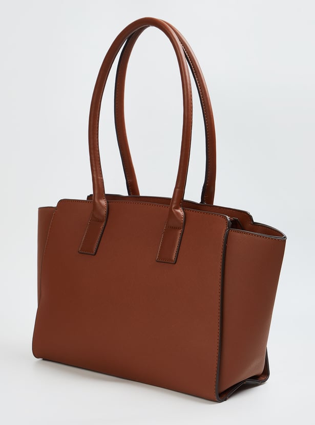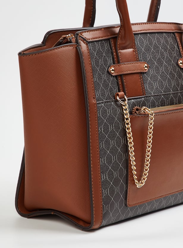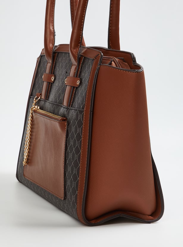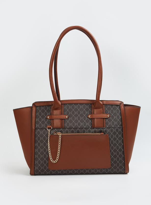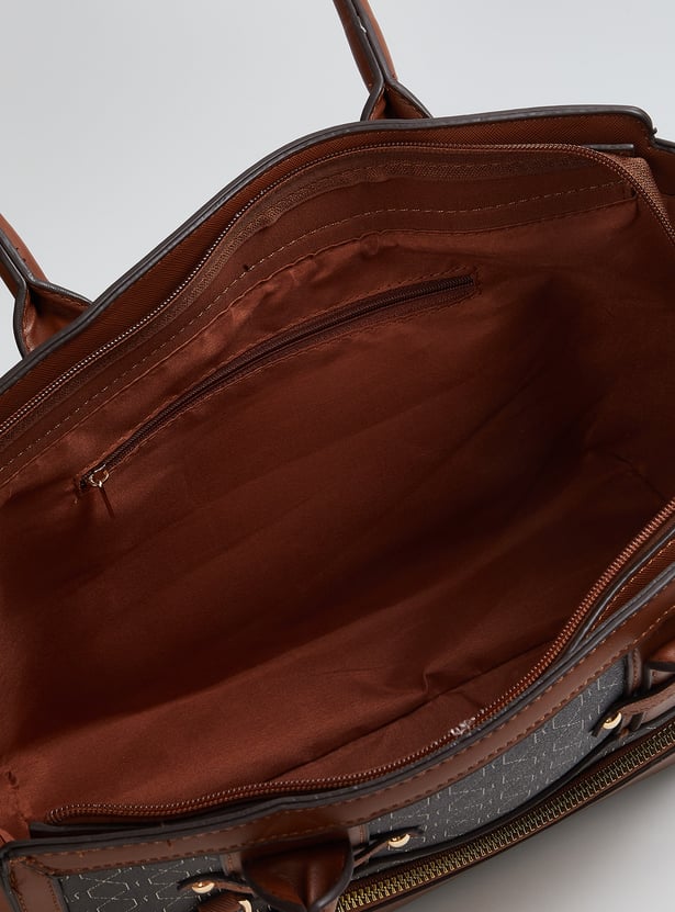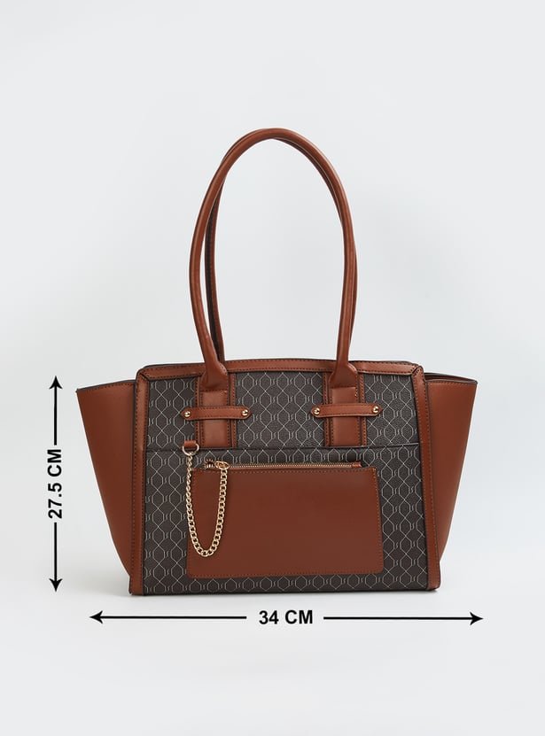 Carry your essentials in style with this printed shoulder bag. Designed with twin handles and a secure zip closure, it also features a front pocket and inner pockets to keep your belongings neatly organized.