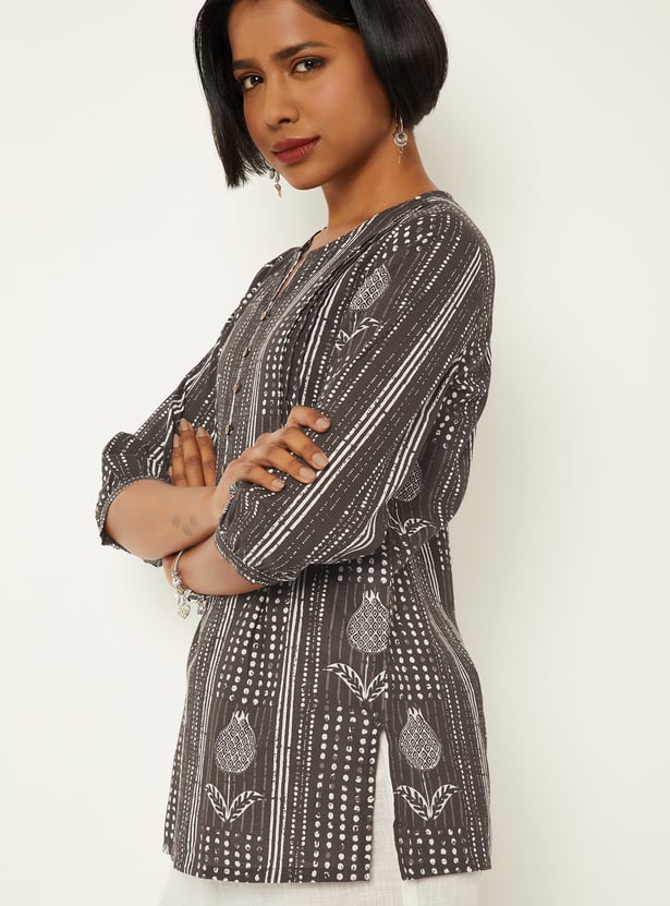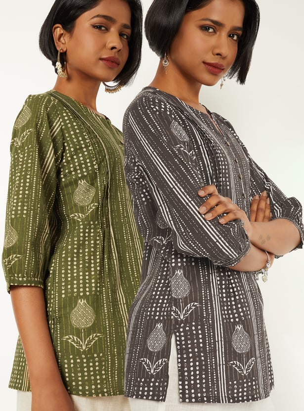 Refresh your ethnic essentials with this pack of two printed straight kurtis. Designed with a classic notch neck and 3/4 sleeves, they offer a comfortable fit with effortless everyday style