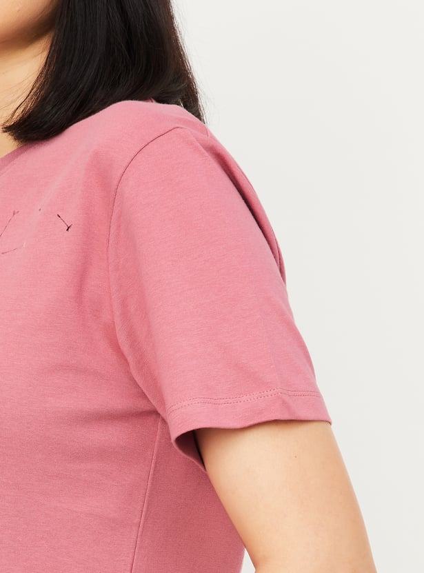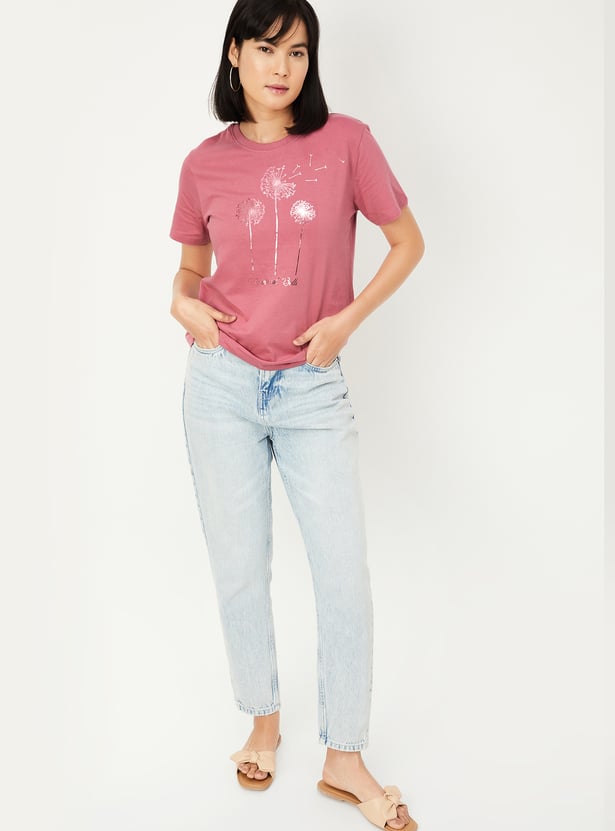 Refresh your everyday look with this printed round-neck half-sleeve T-shirt. Made for all-day ease, it blends casual comfort with a modern touch of style.