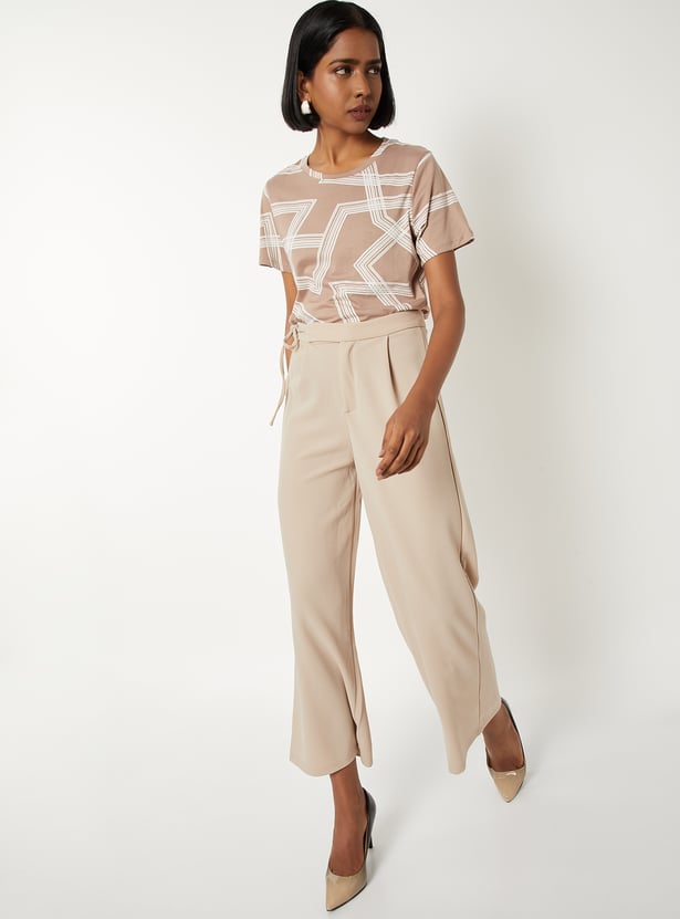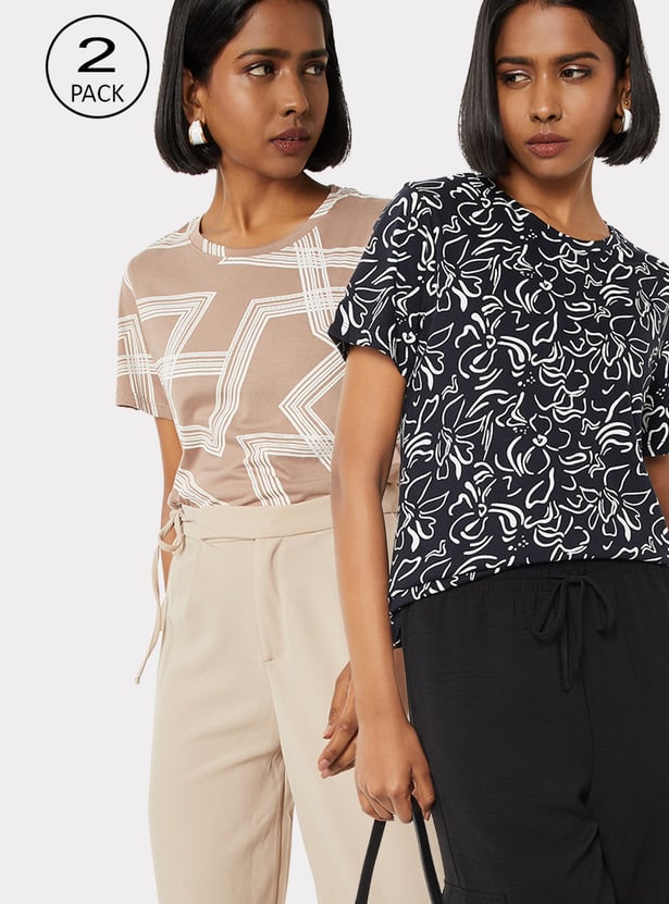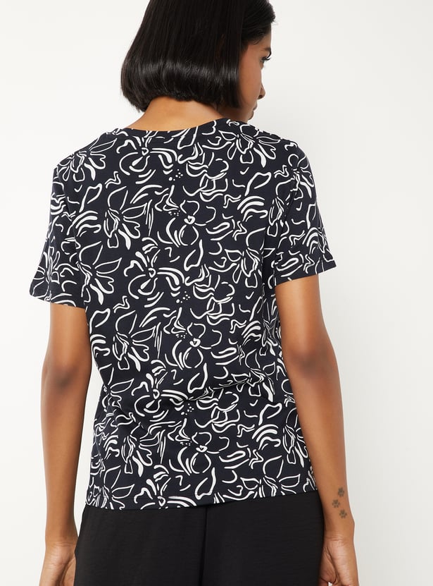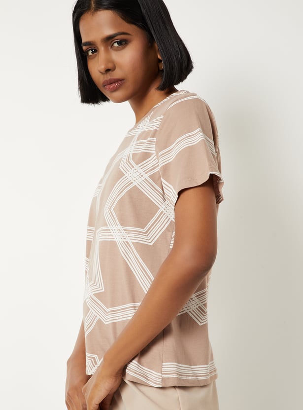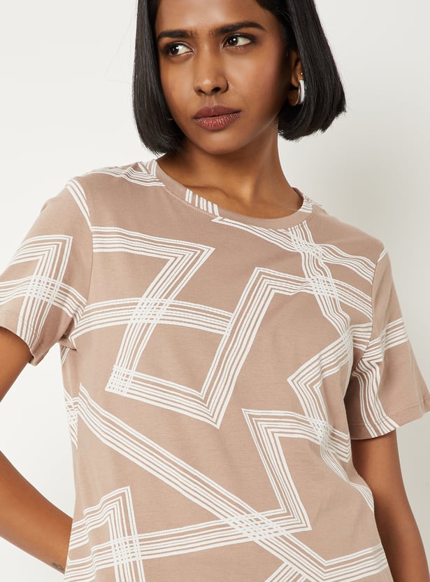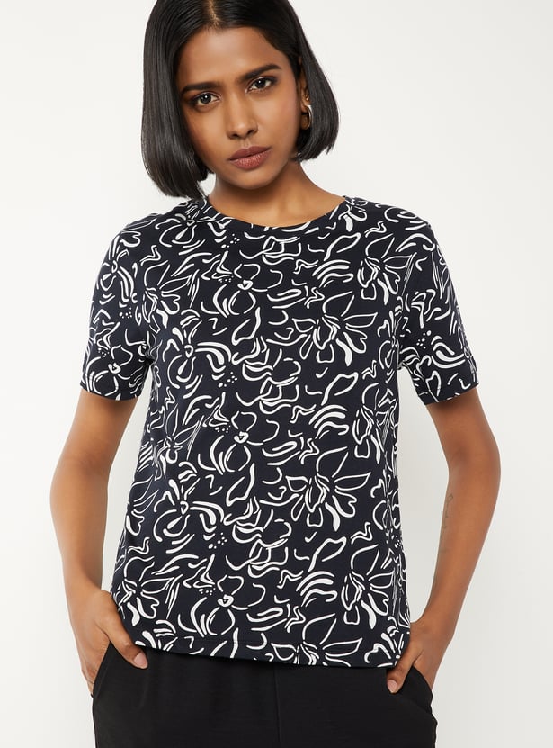 Enhance your everyday collection with this printed round-neck half-sleeve T-shirt. Crafted for lasting comfort, it delivers a modern casual look that’s easy to wear all day.