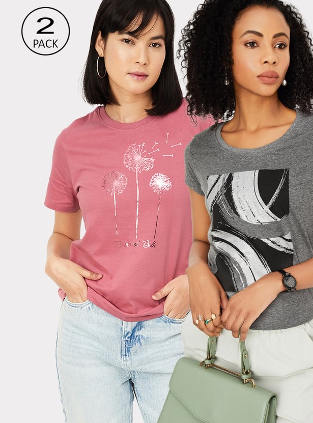 This pack of two printed T-shirts features round necklines and half sleeves for a relaxed, everyday fit.