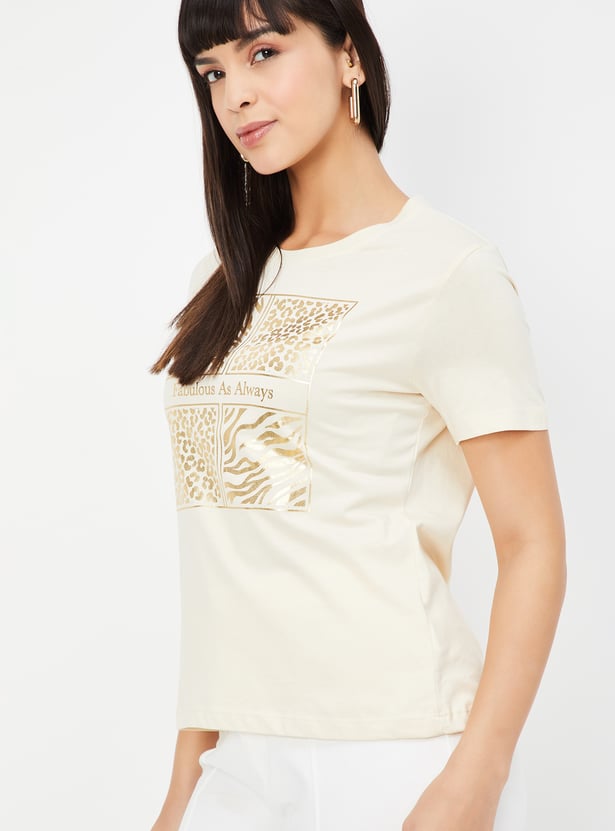 Upgrade your casual wardrobe with this printed round-neck half-sleeve T-shirt. Designed for everyday comfort, it adds effortless style to your daily wear.