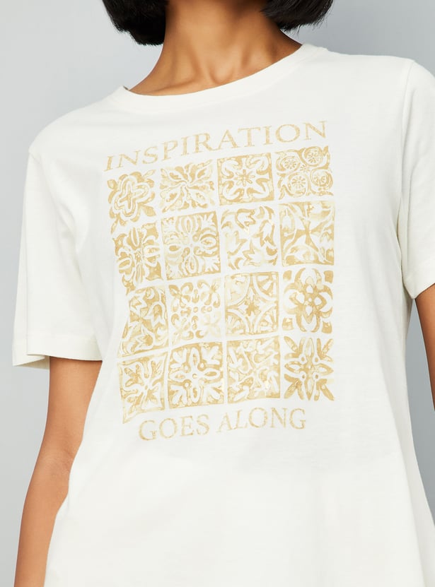 Upgrade your casual wardrobe with this printed round-neck half-sleeve T-shirt. Designed for everyday comfort, it adds effortless style to your daily wear.