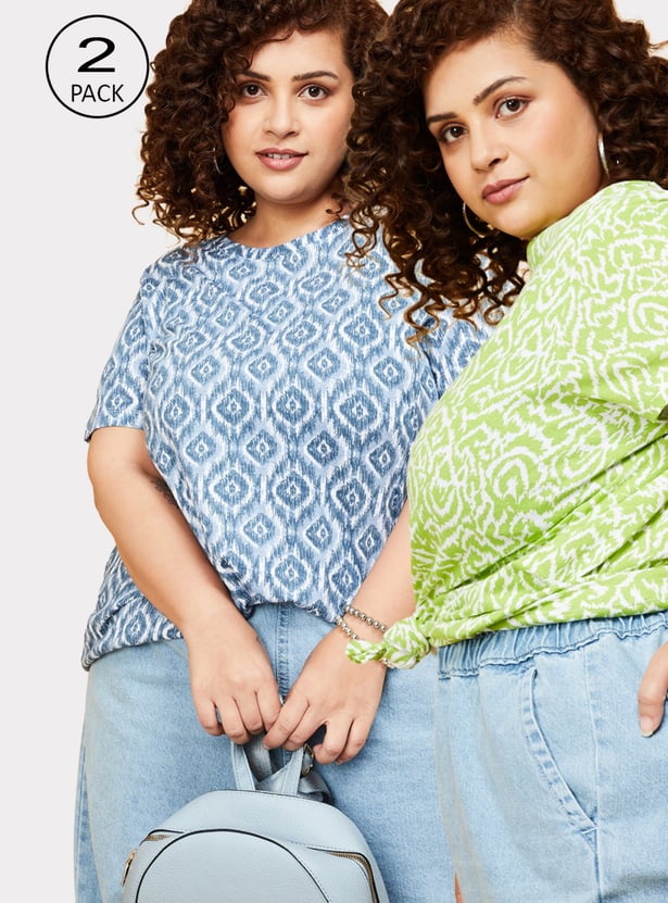 A versatile duo, this pack includes two printed T-shirts designed with a classic round neckline and comfortable half sleeves. Perfect for everyday wear, the prints add personality while the soft fabric ensures all-day ease. Model Size :