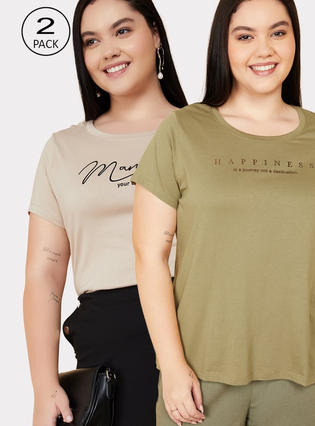 Simple yet essential, this pack of two printed T-shirts with round neck and half sleeves delivers everyday comfort and timeless style. Model Size :