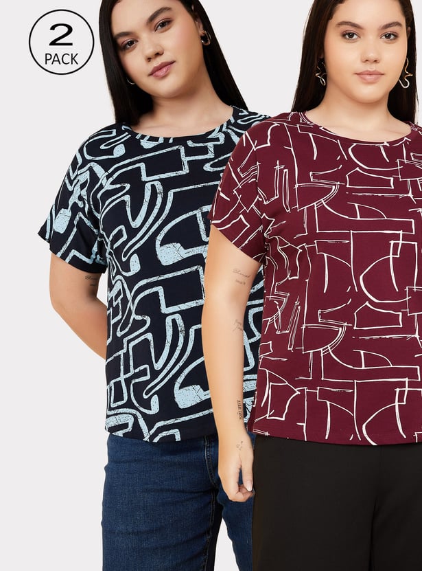 This pack of two printed T-shirts features a round neckline, half-sleeves, and a relaxed fit for easy, everyday wear. Each tee features a distinctive print that adds a hint of personality to casual attire. Model Size :