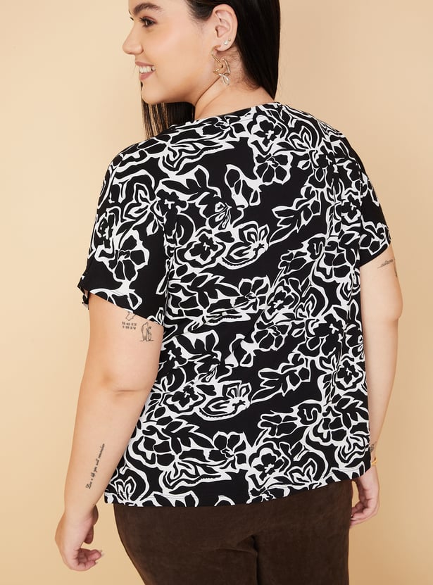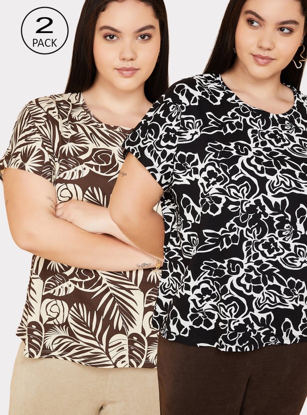 This pack of two women’s T-shirts features bold all-over prints with a classic round neck and half sleeves, offering a perfect blend of comfort and contemporary style. Model Size :