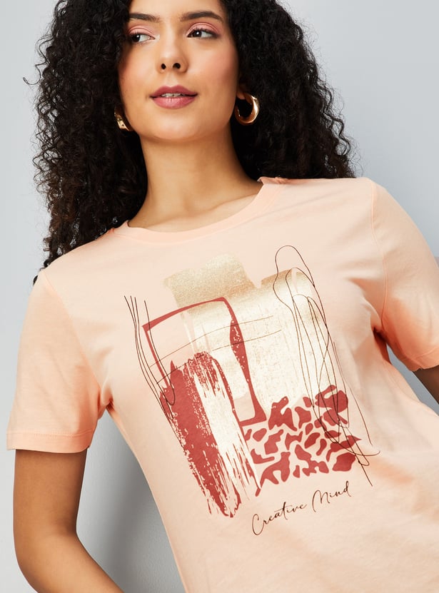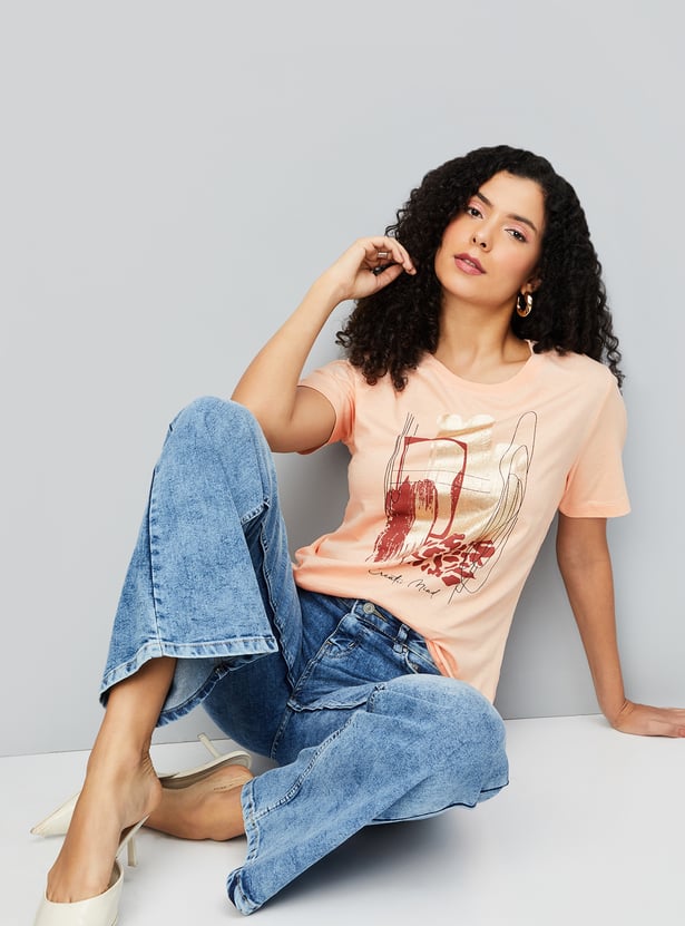 These women’s printed T-shirts feature eye-catching designs with a classic round neck and half sleeves. They offer comfort and effortless style for everyday wear.