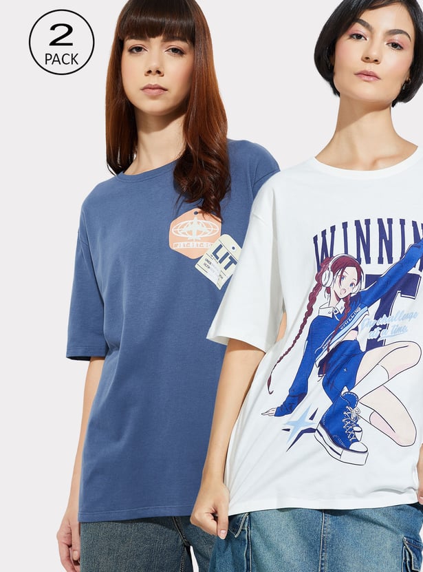 Simple yet essential, this pack of two printed T-shirts with round neck and half sleeves delivers everyday comfort and timeless style.