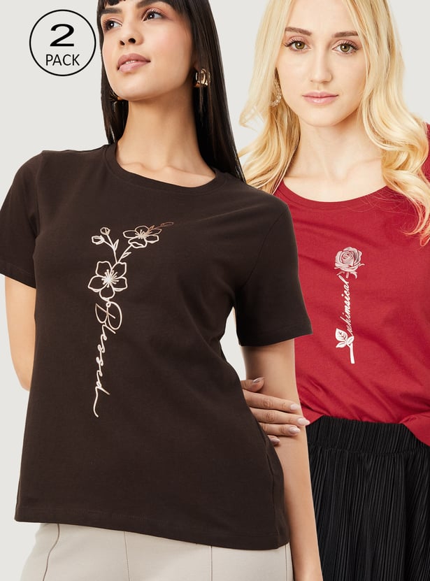 Refresh your casual collection with this pack of two printed T-shirts, designed with a classic round neck and comfy half sleeves. Soft and breathable, they’re perfect for all-day wear.