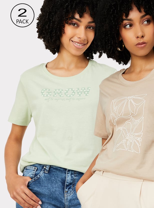 Refresh your everyday wardrobe with this pack of two printed T-shirts, each designed with a classic round neckline and comfortable half sleeves for effortless, casual style.