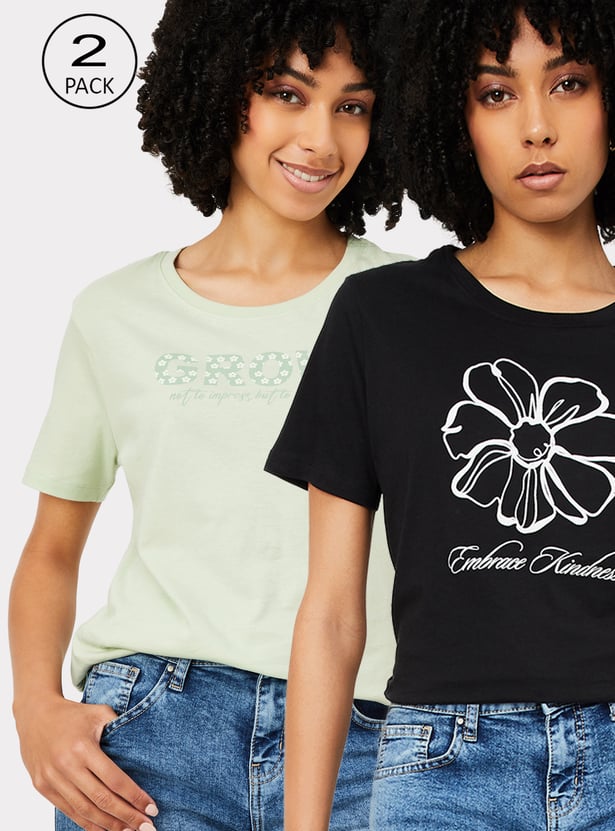 Refresh your everyday wardrobe with this pack of two printed T-shirts, each designed with a classic round neckline and comfortable half sleeves for effortless, casual style.