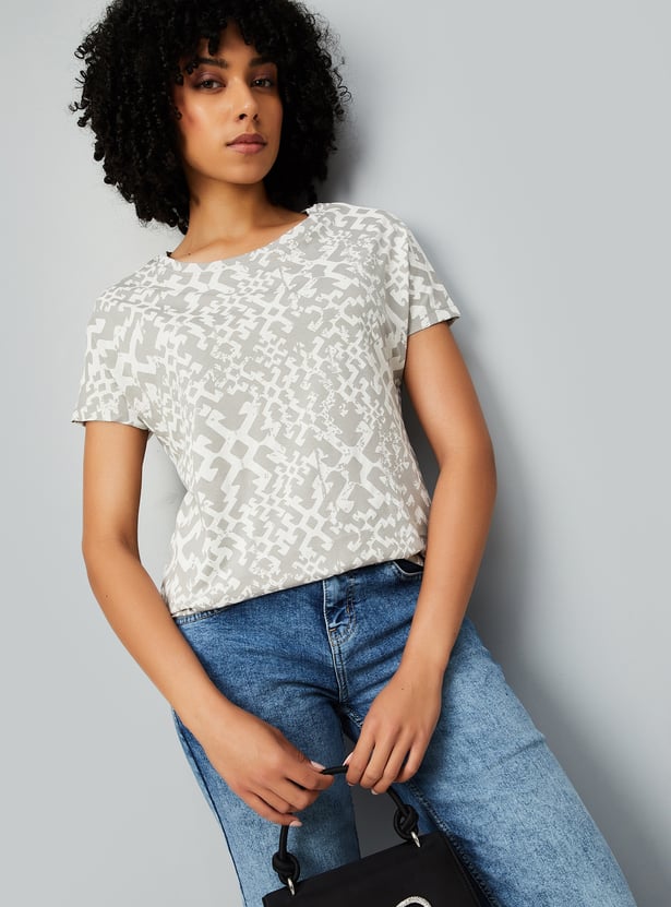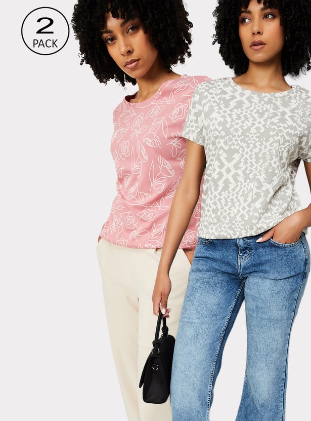 Refresh your everyday wardrobe with this pack of two printed T-shirts, each designed with a classic round neckline and comfortable half sleeves for effortless, casual style.