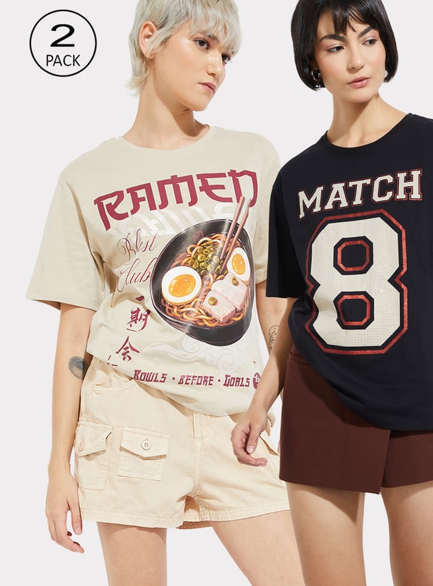 Update your essentials with this pack of two printed T-shirts featuring a classic round neck and comfortable half sleeves. Designed for easy, everyday wear, they bring effortless style to your casual lineup.