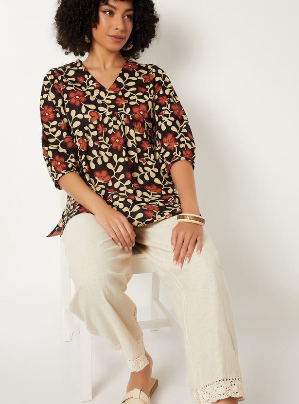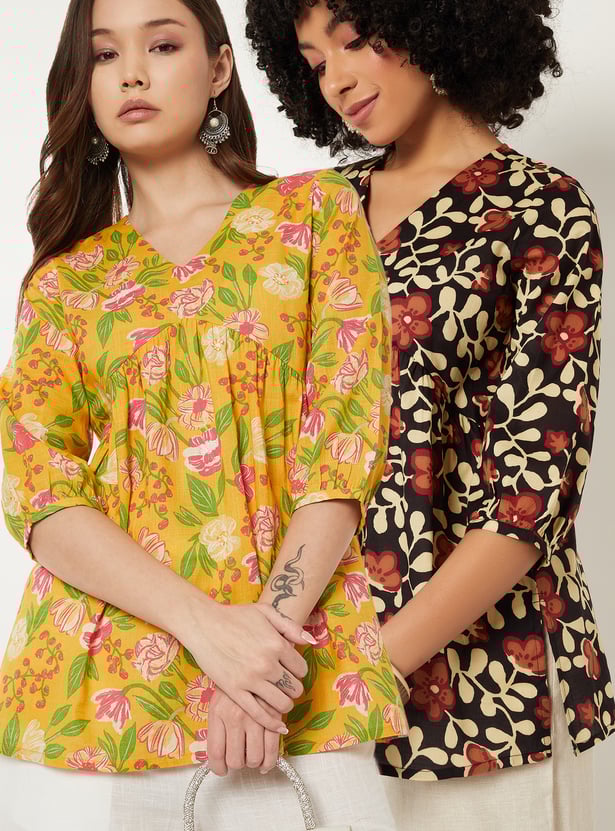 This pack of two printed tunics features a flattering V-neckline and comfortable 3/4th sleeves for easy everyday wear. The versatile prints offer variety while keeping the silhouette clean and relaxed.