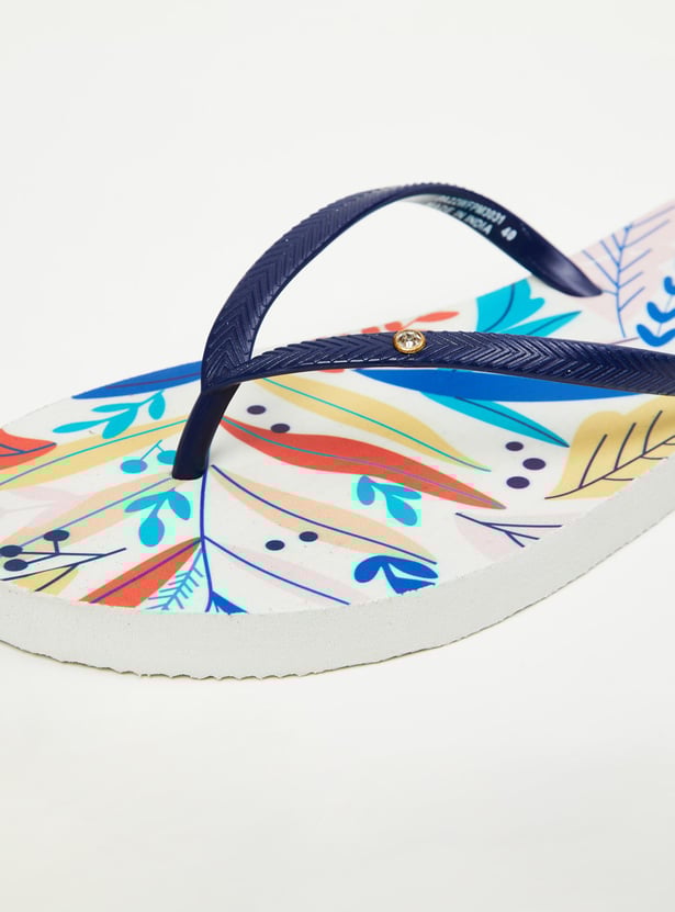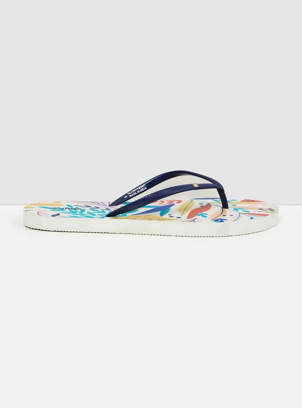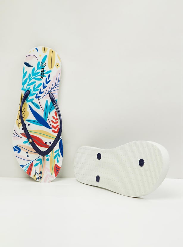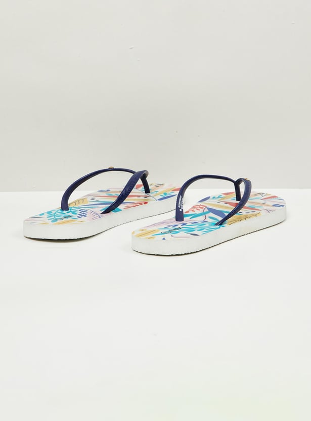 It's time to experience comfort while being stylish. This pair of flip-flops is detailed with a printed surface, v-strap construction, and a soft footbed to walk with ease.