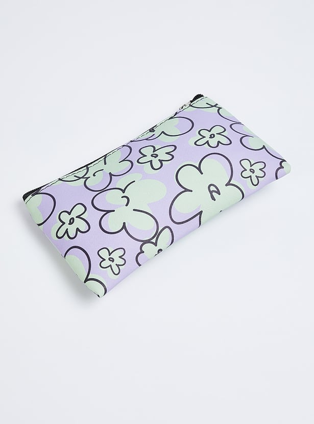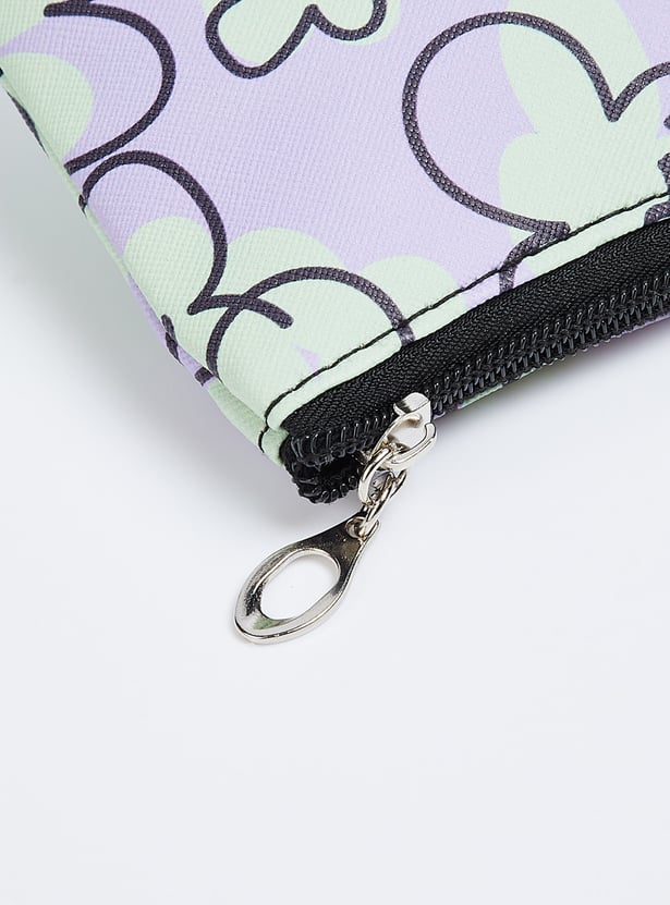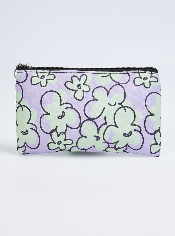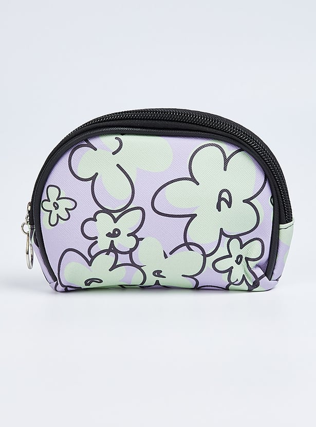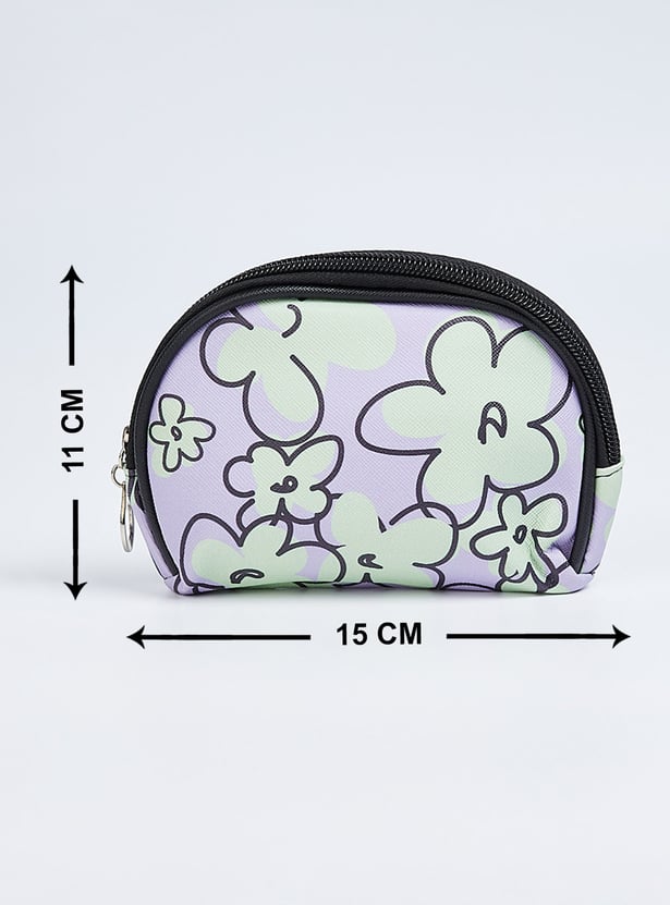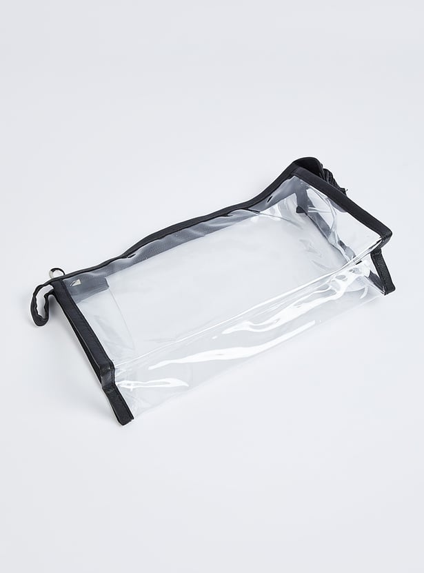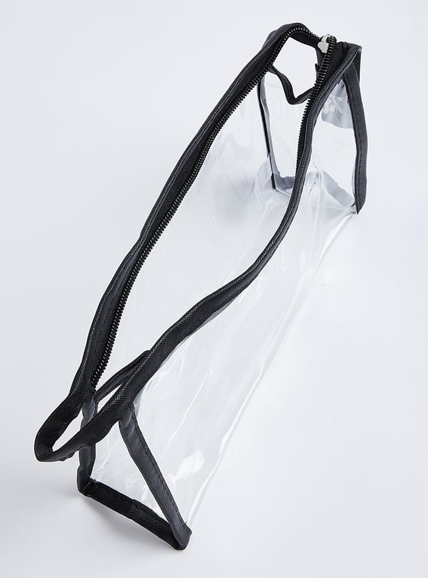 Keep all your essentials organized with these elegant pouches, each featuring an assortment of patterns. One pouch features a transparent exterior, while the other two showcase stylish printed designs with zip closures. They are perfect for storing your makeup essentials in style.