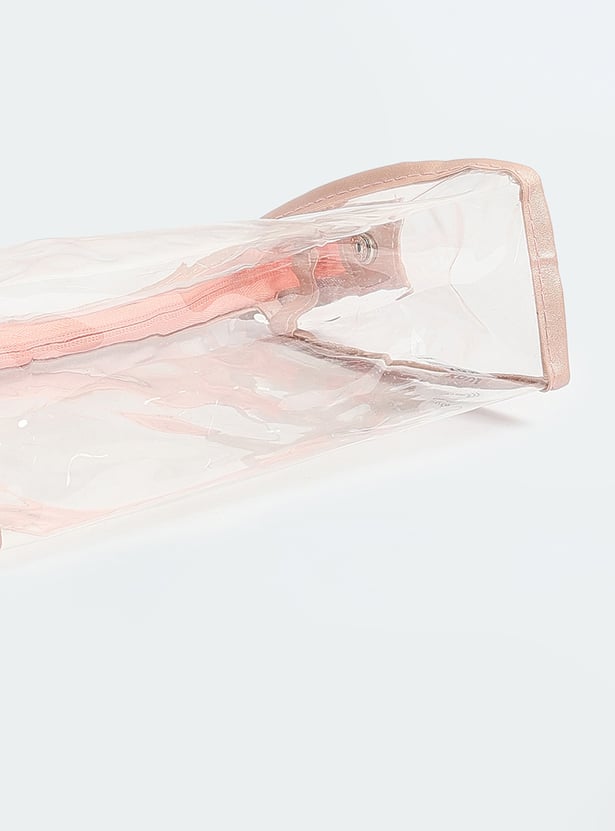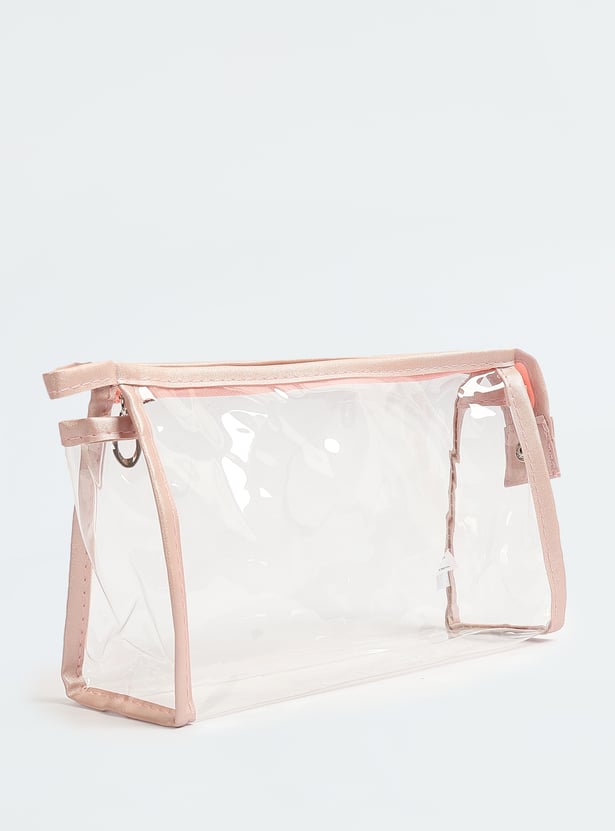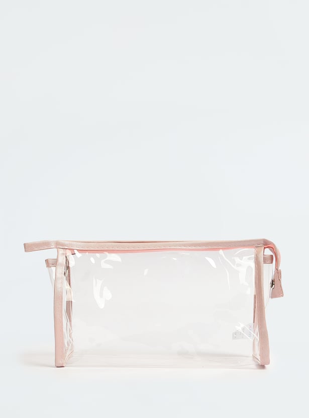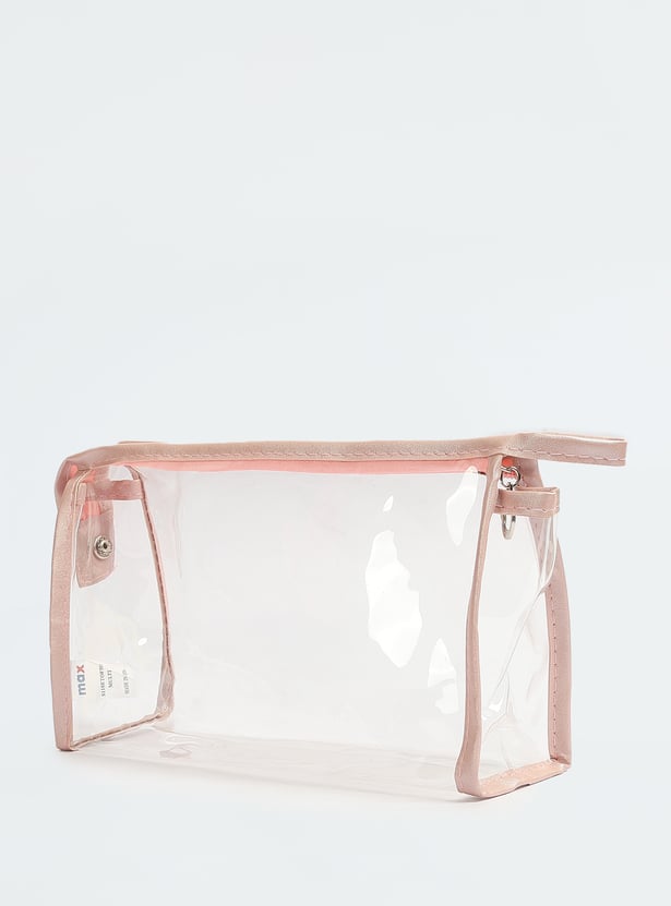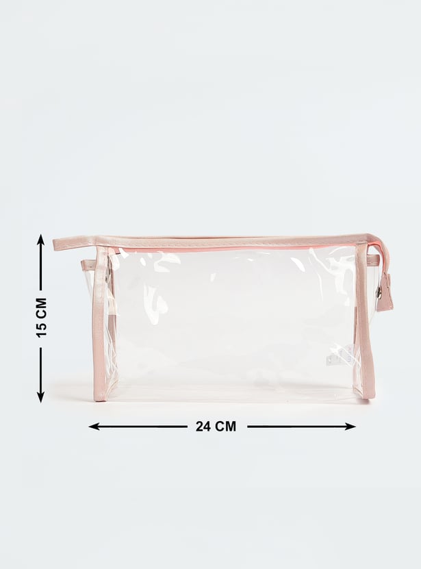 Stay organized in style with these chic pouches. Featuring a variety of designs, one pouch boasts a transparent exterior, while the other two display trendy prints, all equipped with zip closures. Ideal for keeping your makeup essentials neatly stored and fashionable.