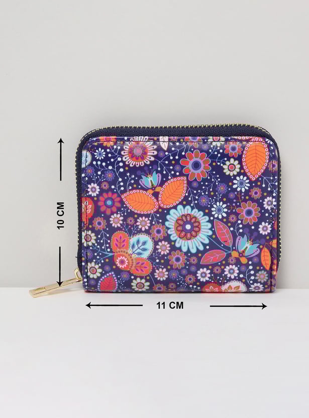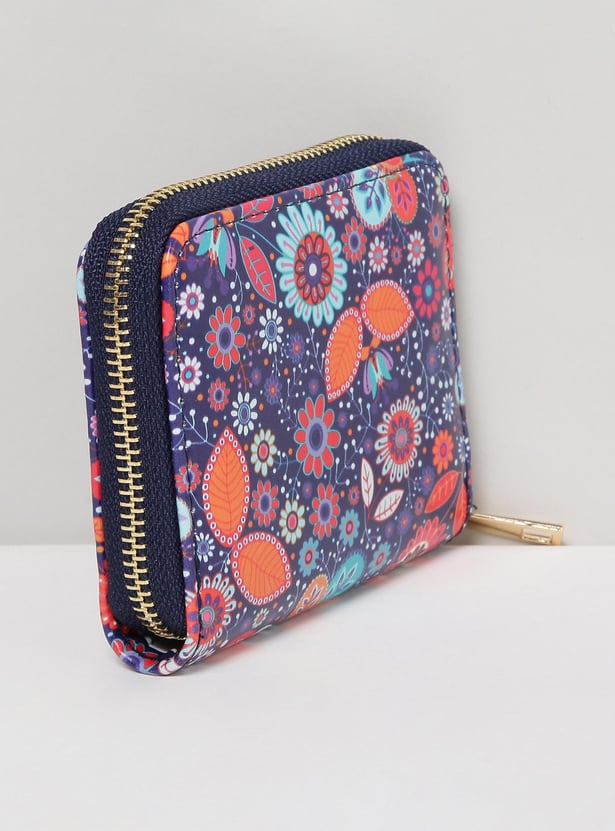 This printed wallet has been designed into a zip-closure design that conceals spacious compartments. The wallet's sleek design is convenient for everyday use.