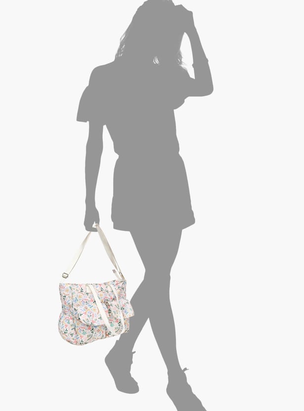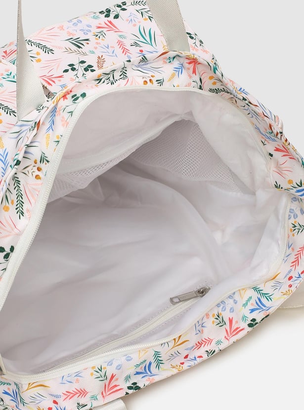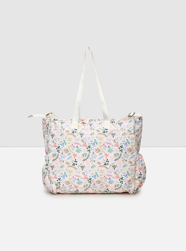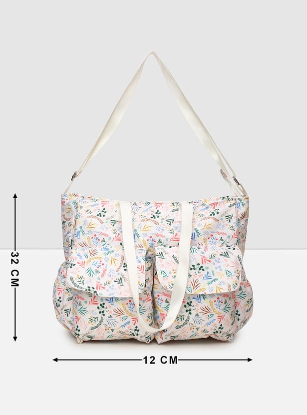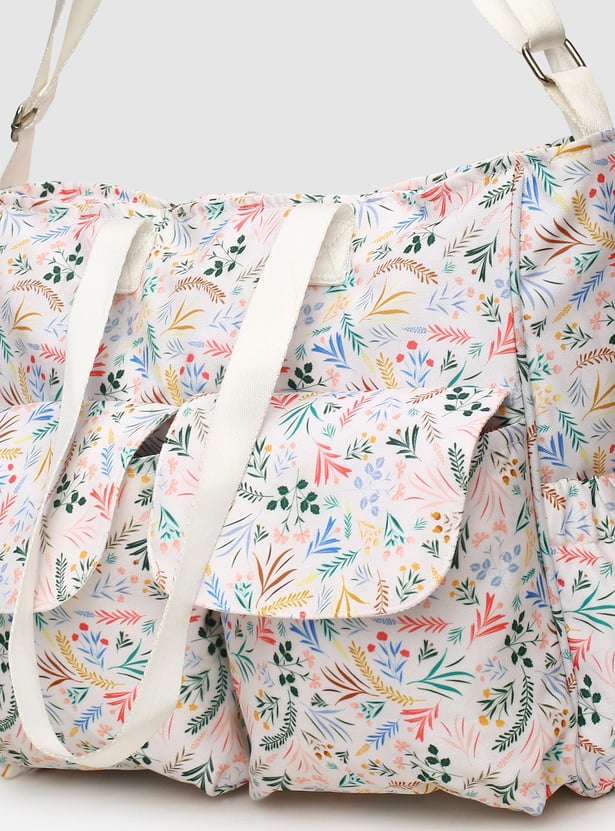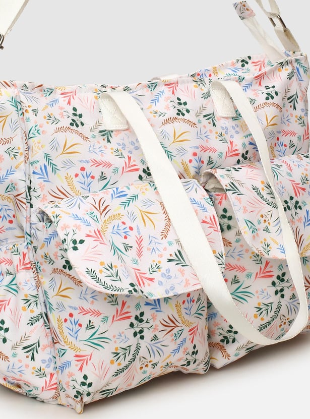 This printed Mumma bag is designed to make your baby care experience pleasant. The adjustable shoulder straps and two small handles of the diaper bag make commuting a breeze.