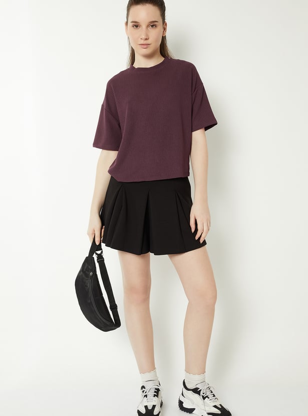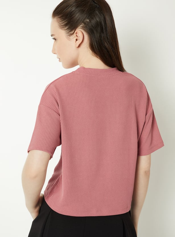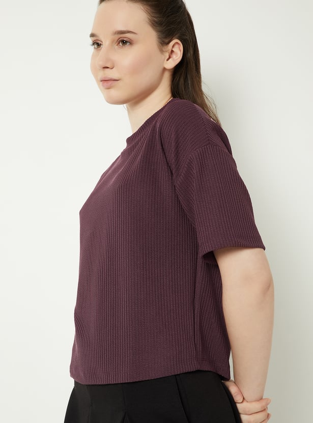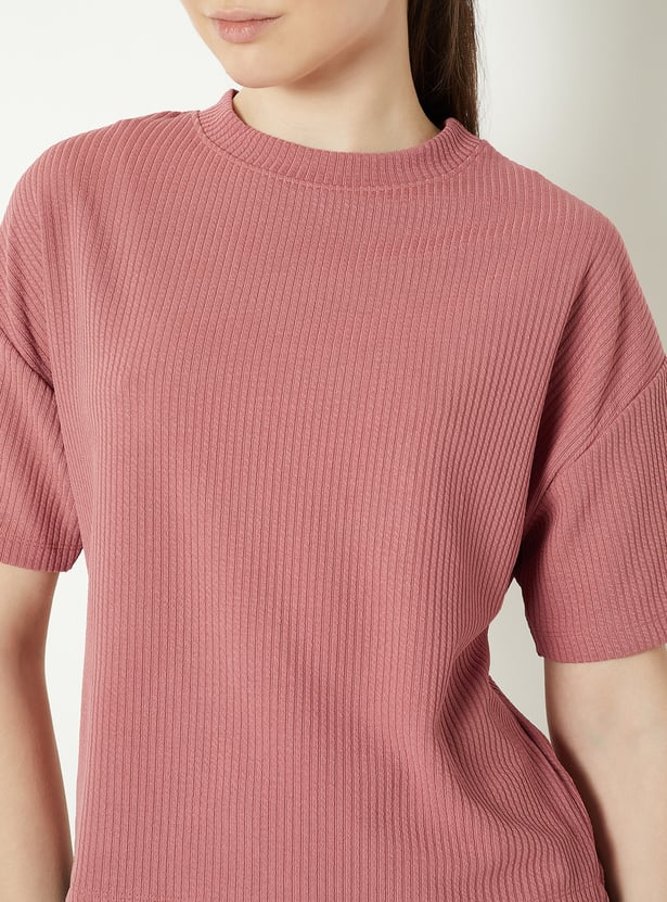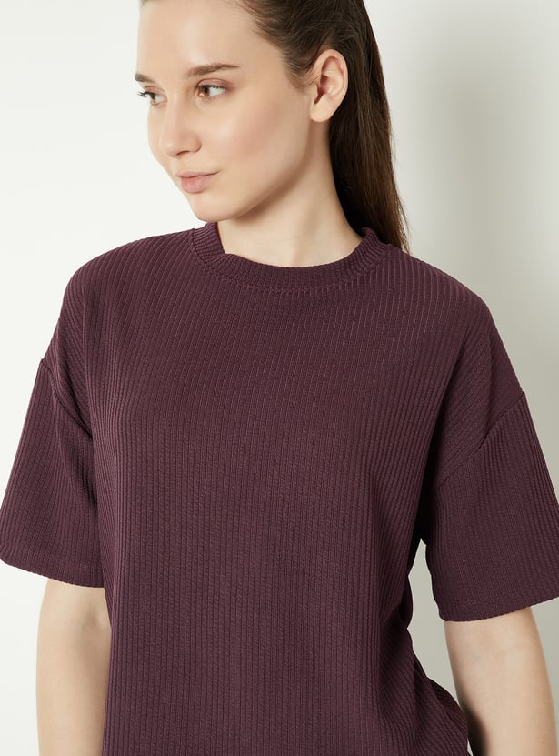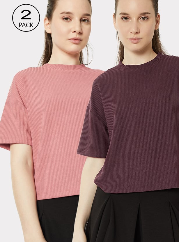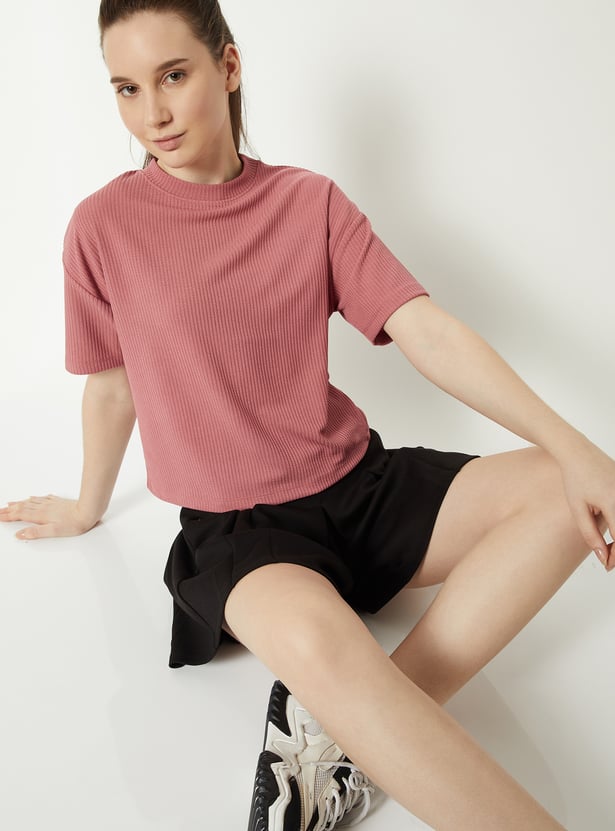 These t-shirts have a ribbed design, a round neck, half sleeves, and a straight hem. Designed in a boxy silhouette, this t-shirt is versatile.