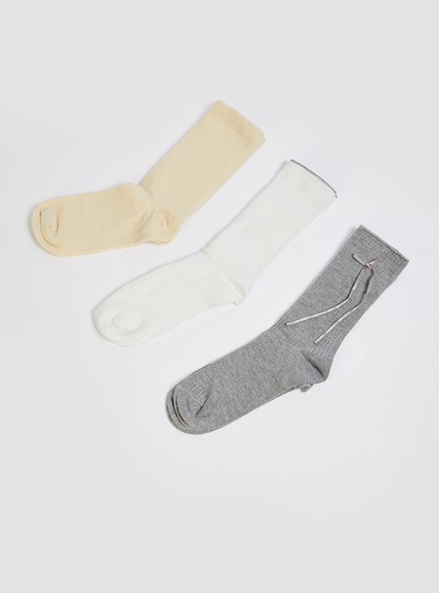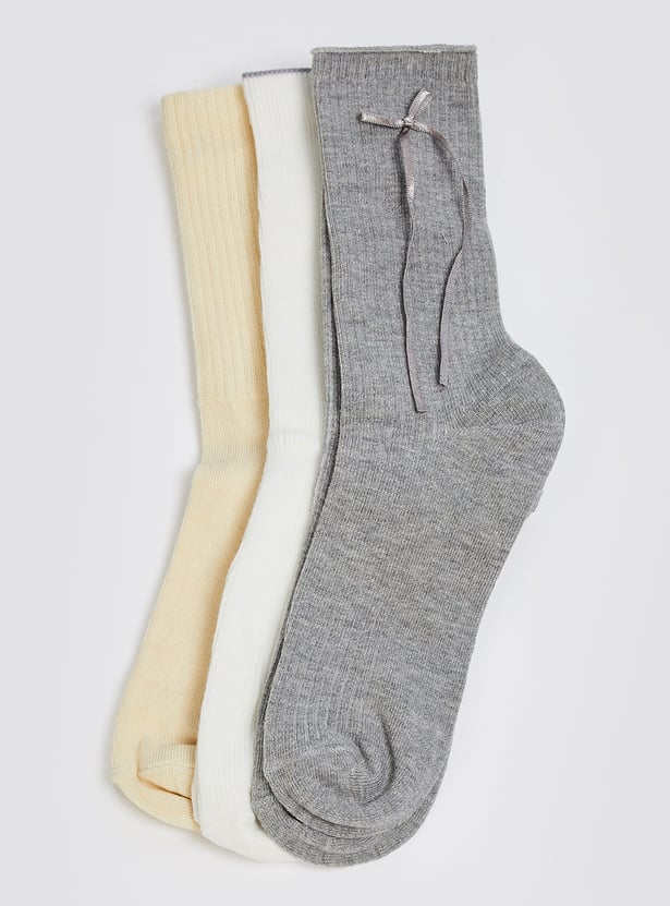 Women Ribbed Calf Length Socks with Bow - Pack of 3