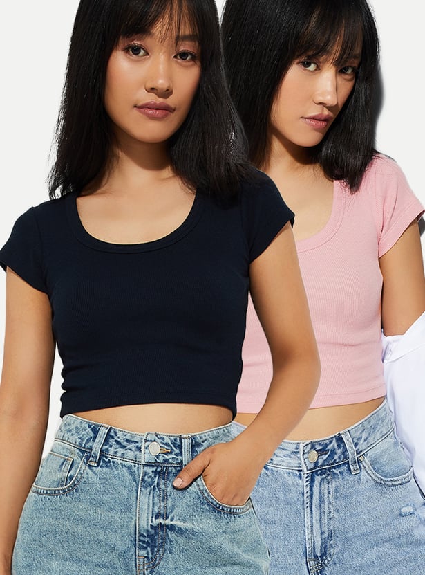 Women Ribbed Cropped Top - Pack of 2
