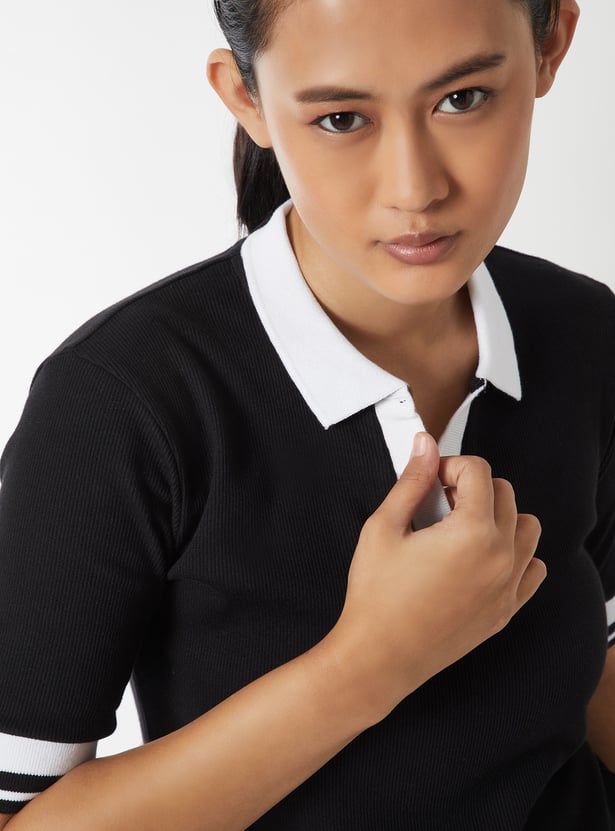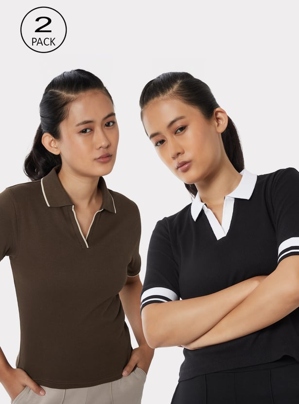 Women Ribbed Johnny Collar Sports T-shirt - Pack of 2