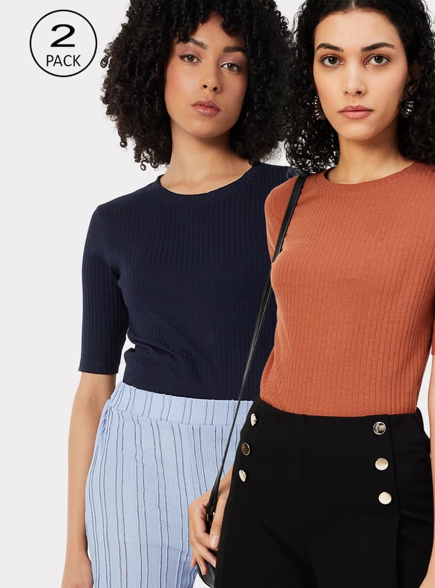 Women Ribbed T-shirt - Pack of 2