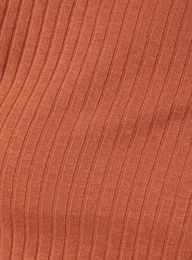 Refresh your everyday look with this ribbed round-neck half-sleeve T-shirt. Made for all-day ease, it blends casual comfort with a modern touch of style.
