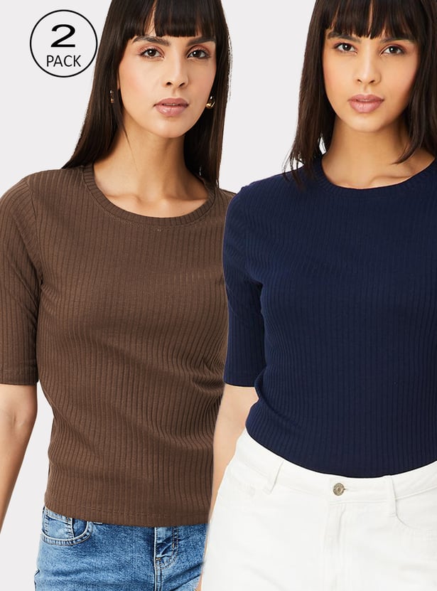 Women Ribbed T-shirt - Pack of 2