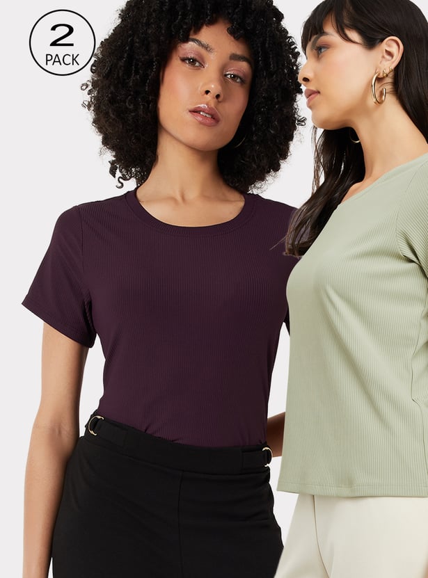 Simple yet essential, this pack of two ribbed T-shirts with round neck and half sleeves delivers everyday comfort and timeless style.