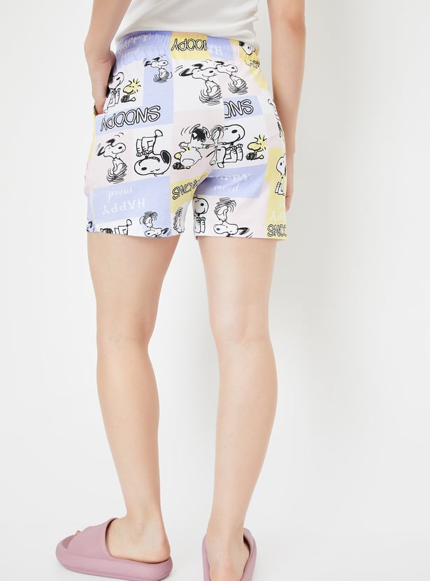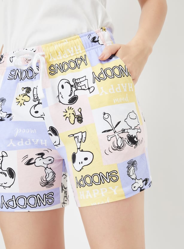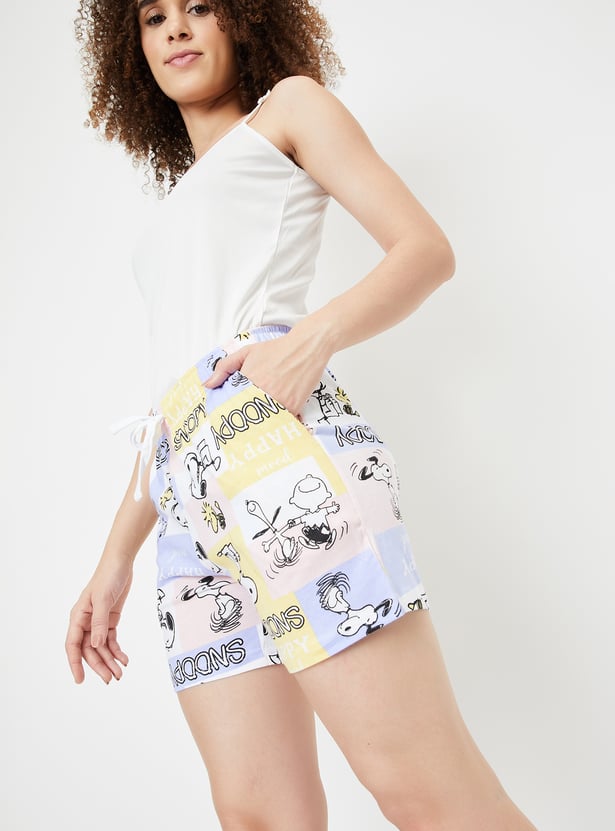 Relax in style with a touch of whimsy in this pair of shorts. The cute and playful Snoopy prints add a fun touch to your loungewear. The elasticated waist ensures a comfortable, flexible fit, while the side pockets provide added convenience.