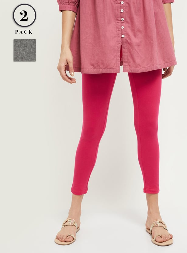 Women Solid Ankle-Length Leggings - Pack of 2