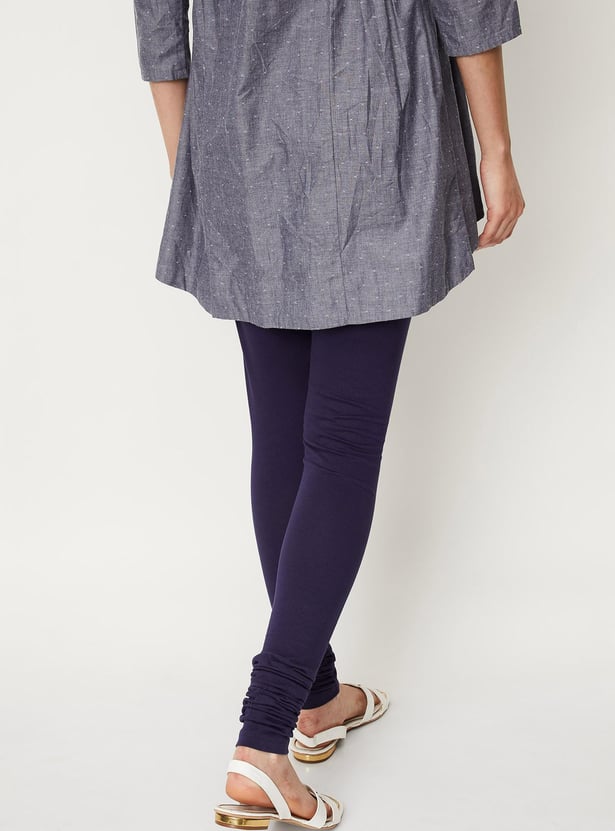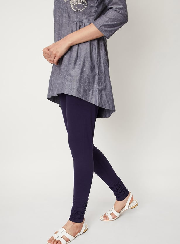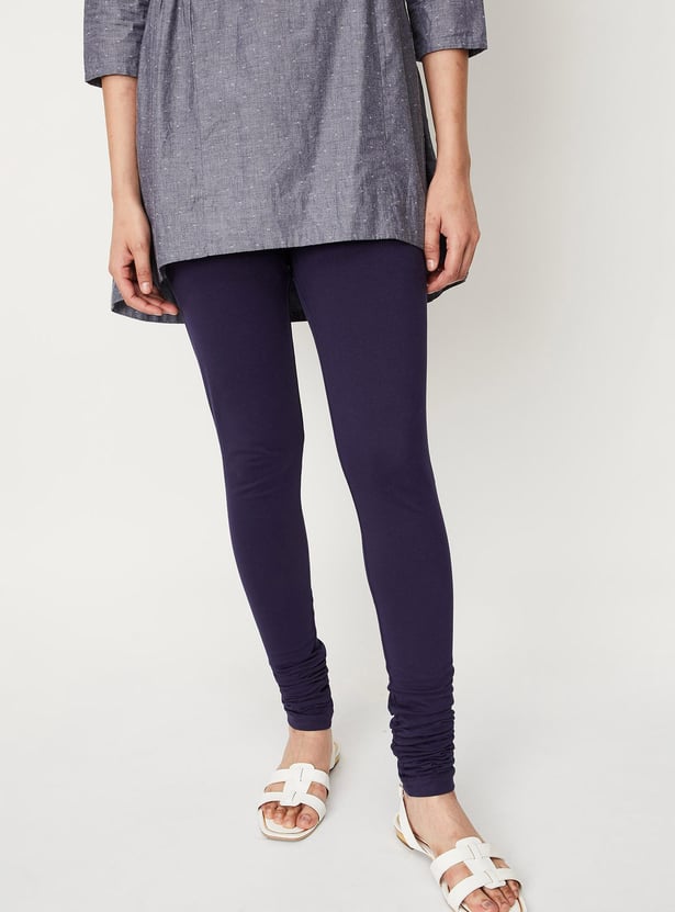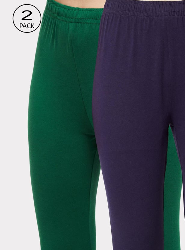 Stay effortlessly stylish with this pack of 2 solid churidars. Designed with an elasticated waist for a comfortable fit, they offer a sleek silhouette.