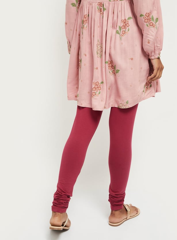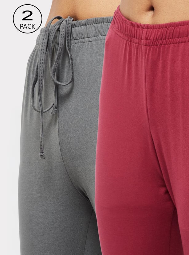 These solid packs of 2 churidars feature an elasticated waist, drawstrings, and gathered hems.