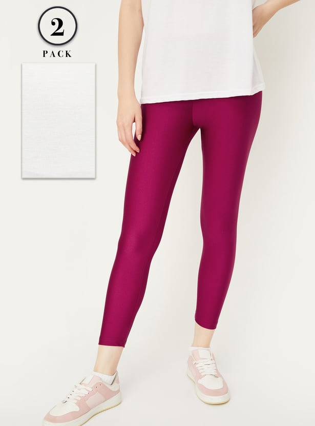 Upgrade your everyday essentials with this solid leggings pack of 2 — designed for comfort and versatility. Featuring an elasticated waist, these leggings ensure a snug fit and effortless style.