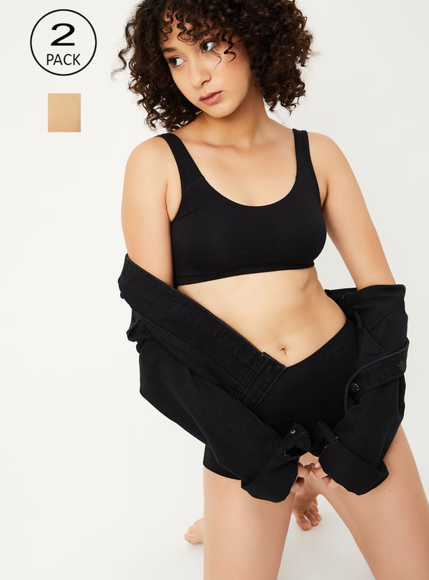 Women Solid Non-Padded Sports Bras - Pack of 2