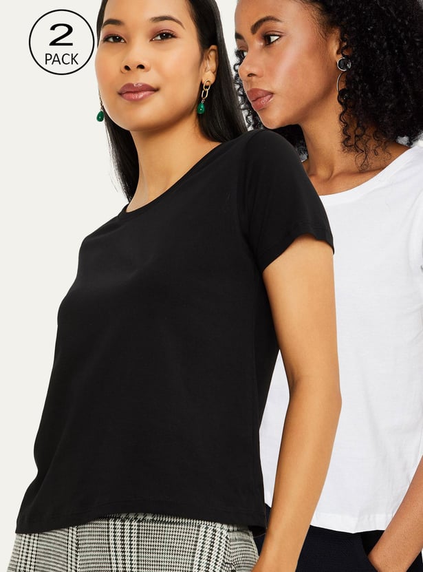 Stock up on essentials with this pack of 2 solid T-shirts, featuring a classic round neck and half sleeves for everyday comfort and versatility.
