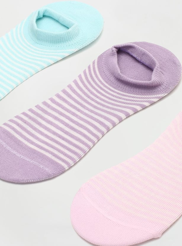 Women Striped No-Show Socks - Pack of 3