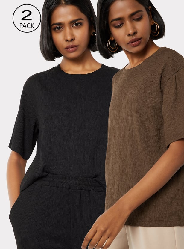 Refresh your everyday lineup with this versatile pack of two textured T-shirts featuring a classic round neck and comfortable half sleeves.