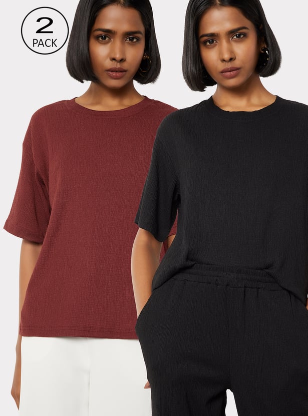 Women Textured T-shirt - Pack of 2