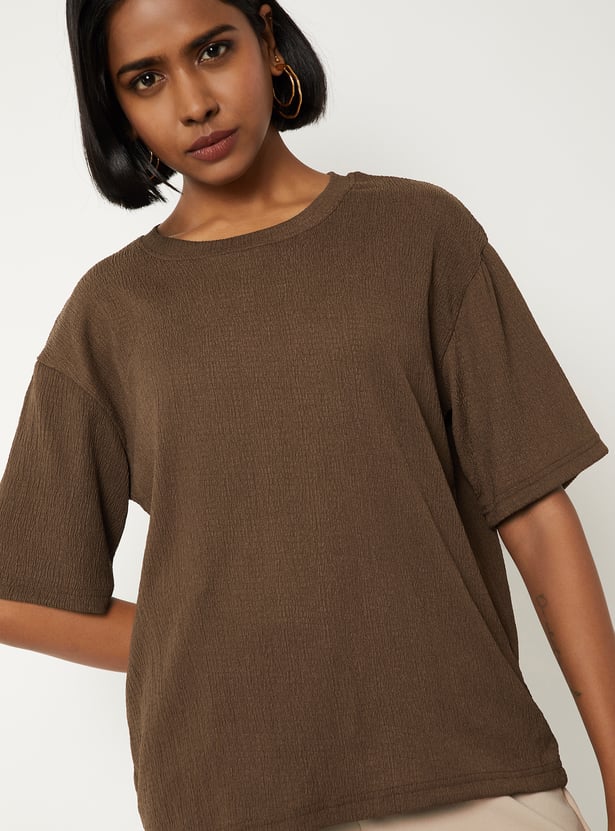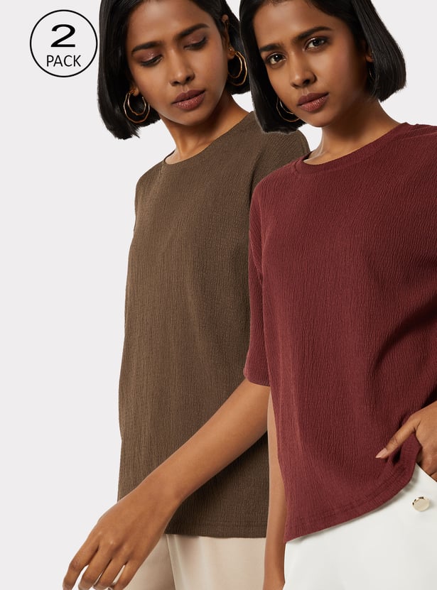 Effortless and stylish, this pack of 2 textured T-shirts is perfect for everyday wear. Designed with a classic round neck and half sleeves, they bring comfort with a touch of personality through chic prints.