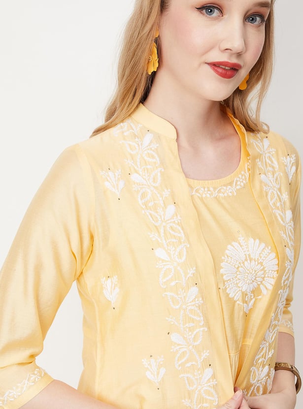 Women Chikankari Embroidered Kurta with Jacket