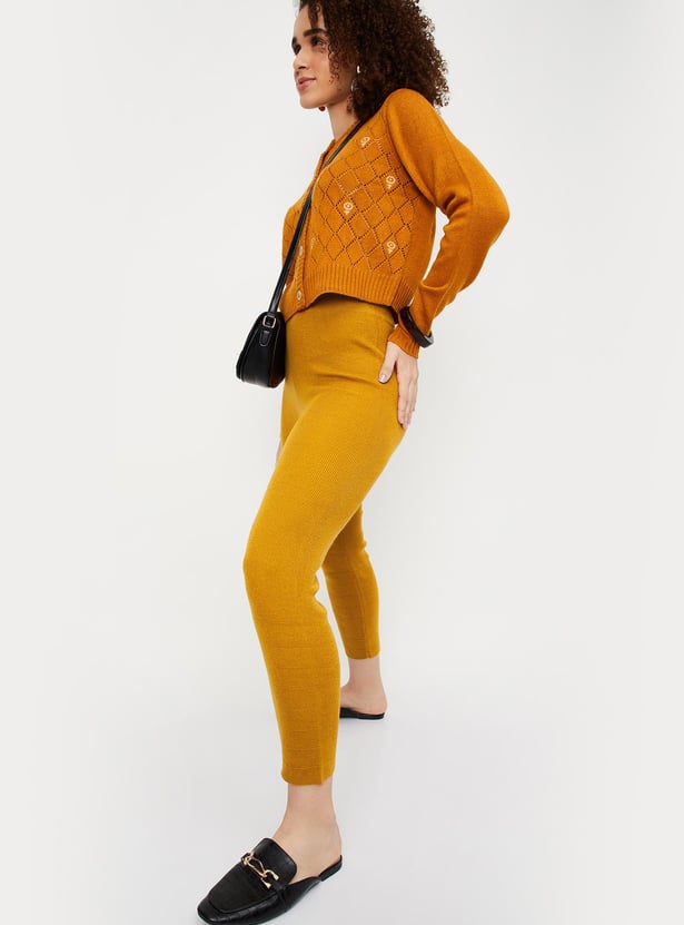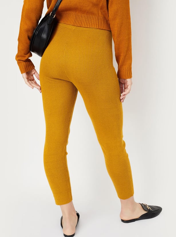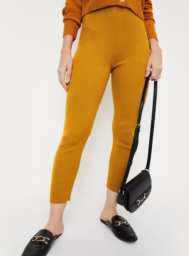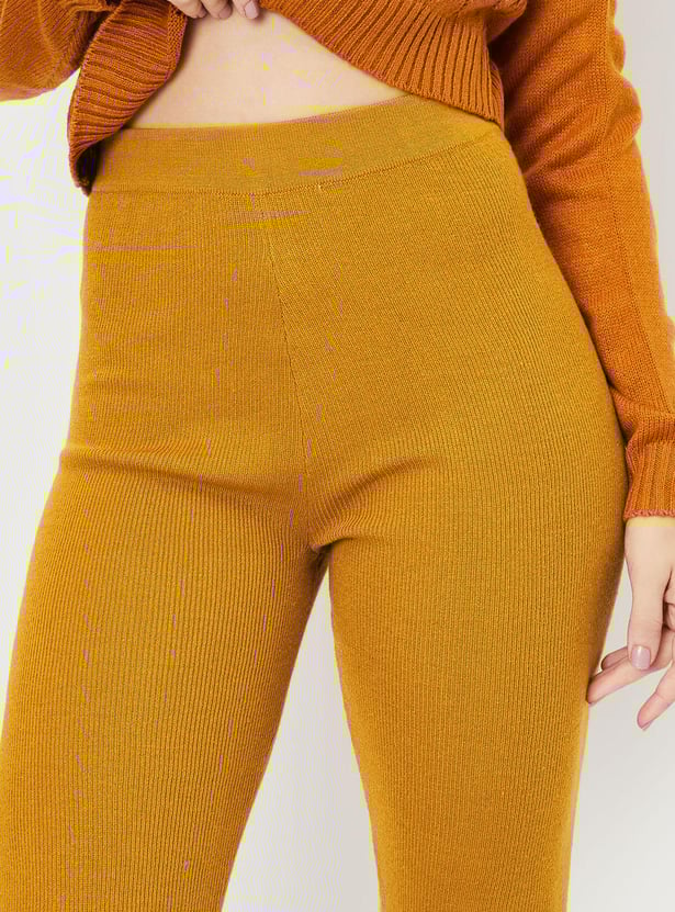This pair of knit pants with a waistband that is elasticized and a ribbed surface will coordinate great with your casual outfit.